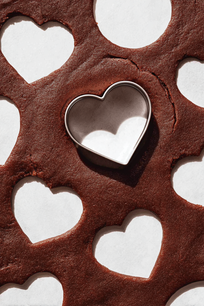Take the chilled dough and roll it between two sheets of parchment paper until it is about 1/8 inch (3 mm) thick. Pro tip: Slide the rolled dough (still in the paper) into the freezer for 10–15 minutes. This firms it up, making it incredibly easy to cut clean shapes with your cookie cutters. Place the shapes on your prepared baking sheets.
