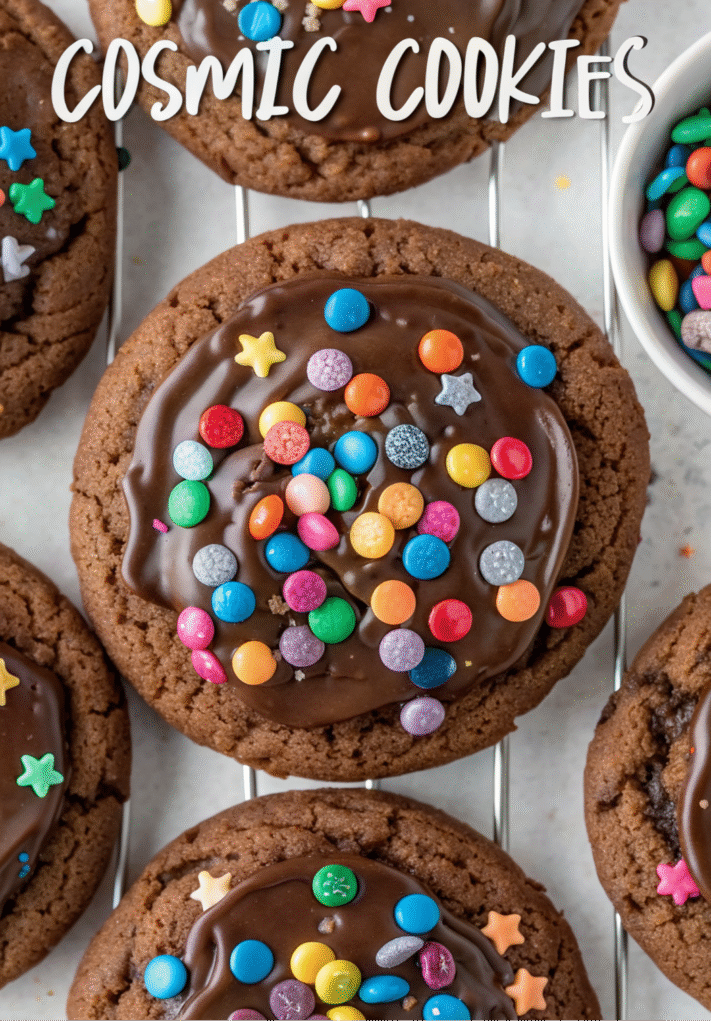 And there you have it – your very own batch of homemade Cosmic Cookies! You’ve successfully channeled that beloved childhood treat into a sophisticated, fudgy, and utterly irresistible cookie. The rich chocolate, the smooth ganache, and those playful sprinkles come together in a symphony of flavor and texture that’s bound to bring smiles and maybe even a few “oohs” and “ahhs.”
